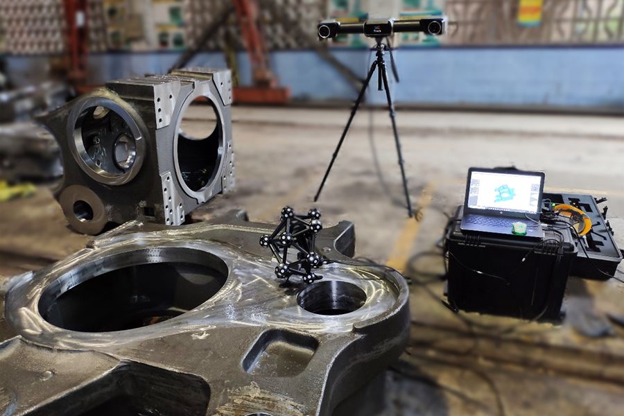 Hyperscan Ultra智能光学追踪3D扫描仪因其小巧,便携,高精度的特点,不受工厂复杂环境的影响,既能满足其检测要求,又能极大的提高质量检测的效率,且能兼顾许多传统检具无法检测的参数种类,已经逐步被企业所接受和应用,在工业质量检测领域得到了广泛的应用。尤其是在铸造行业,HyperScan Ultra 因其无需粘贴标志点,使用便携等特点,在应用大型铸件时有着快速全面的特点,对提高此类工件检测效率有着巨大的提升和检测环节的补充。