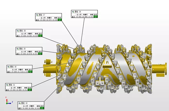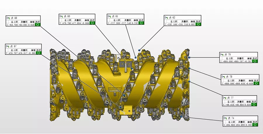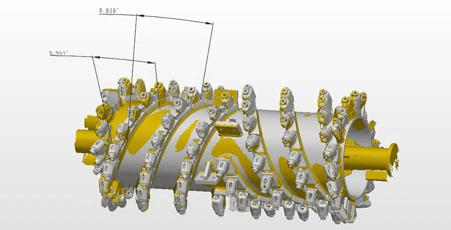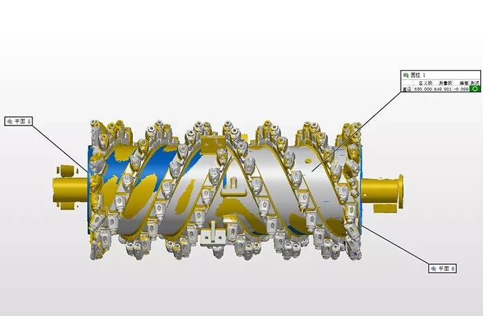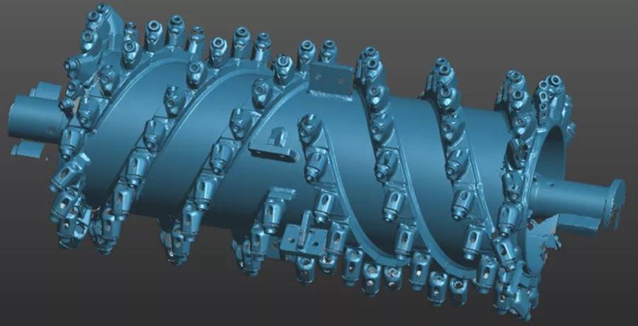 铣刨鼓是道路铣刨机的核心,需经过严格的检测,以避免磨损以及变形的负荷缩短设备使用寿命。过去采用接触式打点来进行检测,不但测量速度慢,而且测量死角多,测量数据不全,且铣刨鼓的刀头为活动刀头,装配后测量无法测得准确的刀头点位。