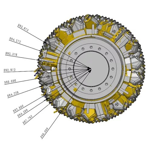 04 分析铣刨鼓各刀头装配孔位中心轴线与筒身端面的偏差角度