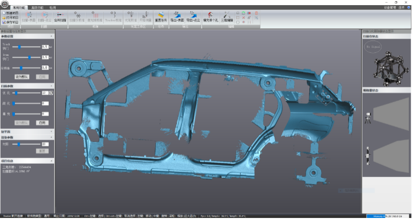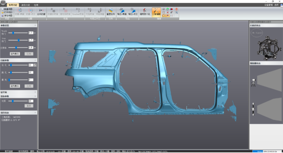 >研发实力:消除常见智能光学追踪3D扫描仪多角度扫描拼接不上的问题,累积扫描精度极高,单机可完成4米以上工件扫描,数据无台阶、变形、条纹等,适用多种工件要求。