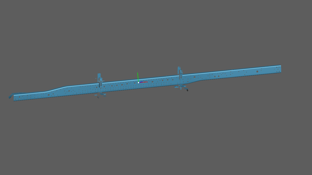 客户此次需要检测的车架纵梁长度为7m,板料厚度为12mm,需要测量安装孔的位置及大小,模拟安装时两端变形量。