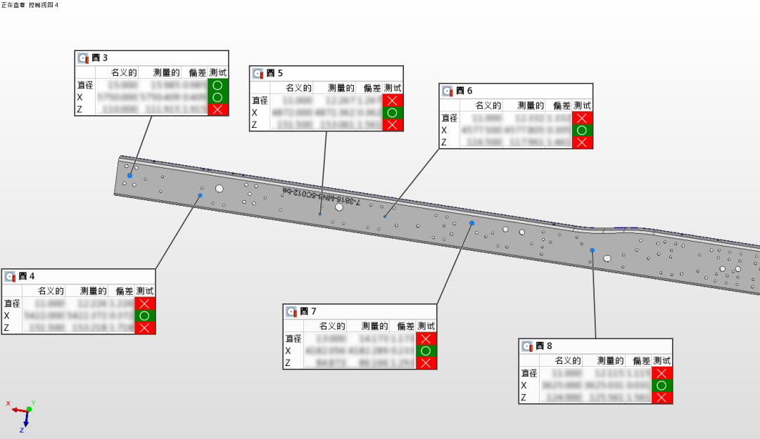 1、测量纵梁孔的位置度及大小,公差±0.5mm