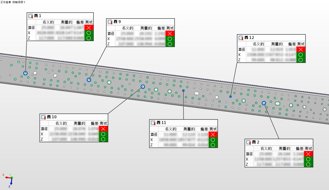 2、使用AtlaScan的测孔功能提取车架上的安装孔位,测孔过程如下